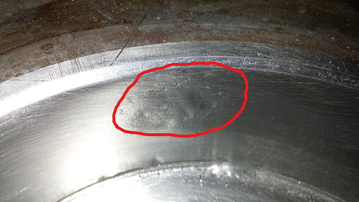 De beschadiging na reparatie, afgedekt met een Nikkel – Kobalt laag.